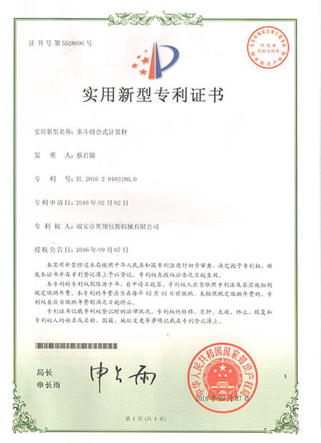 實用新型專利證書-多斗組合式計量秤