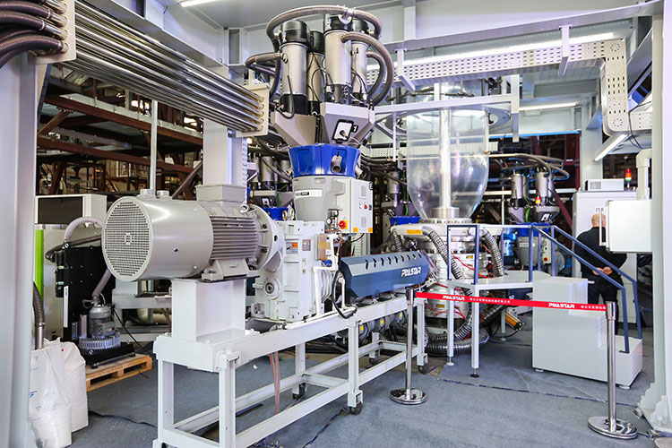 先進(jìn)的自動化模塊:單層共擠吹膜機生產(chǎn)線具有先進(jìn)的自動化功能,集中供料、配料、克重控制、全自動中心收卷等。全部集成于觸摸屏集成控制。使操作更為簡便,成產(chǎn)效率提升。