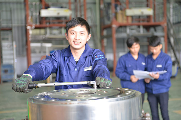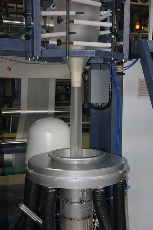 錐形疊加模具:單層共擠吹膜機生產(chǎn)線采用的是單層錐形模具。我們通過熱流體學(xué)優(yōu)化布局,并借助3D模擬仿真軟件觀察流體情況。我們確信經(jīng)過高度的拋光和鍍膜工藝后,經(jīng)奧翔高速螺桿的高壓,高速沖刷,每個流道都具有自清潔能力。從而減少粒子更換過程中的浪費,減少停機維護(hù)時間。